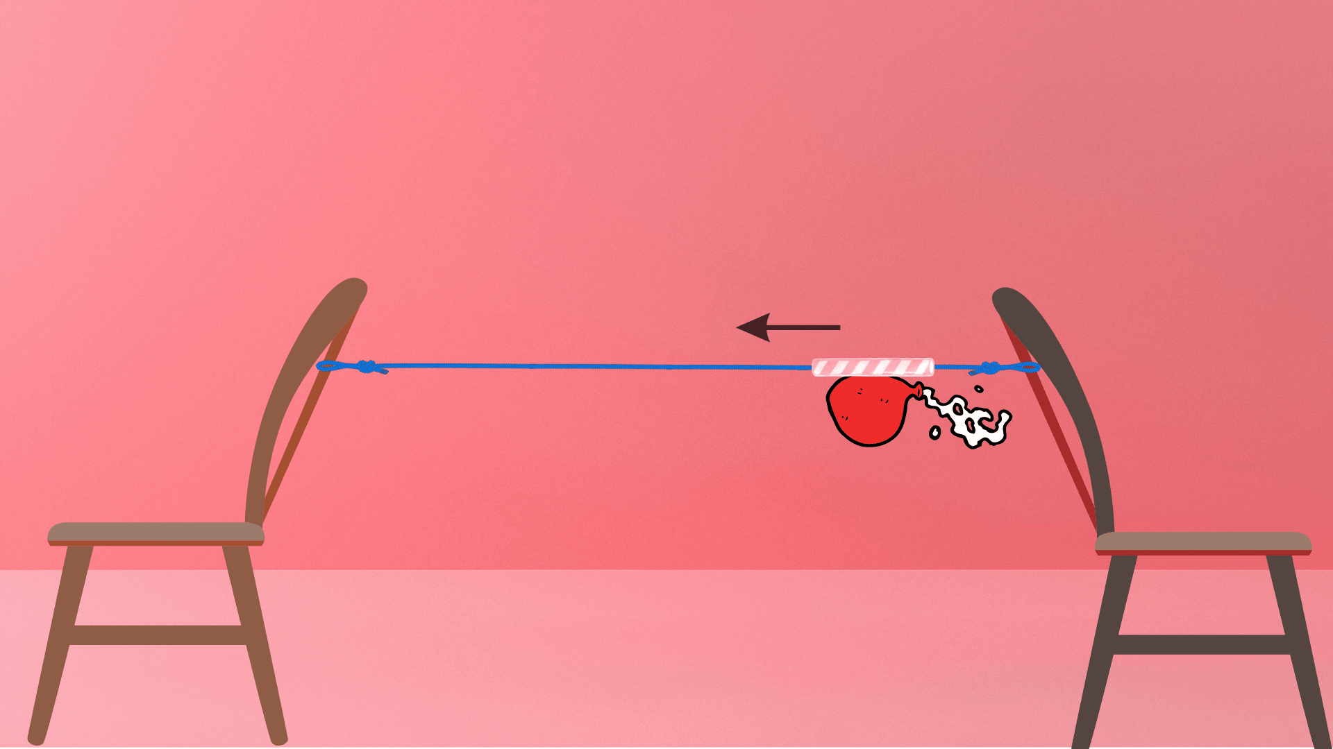 - Let go of the balloon and watch as the air rushes out and propels the balloon along the string.